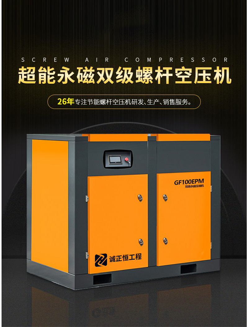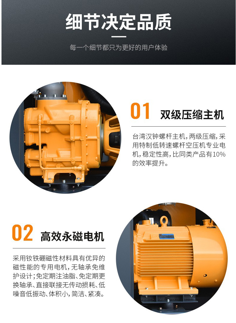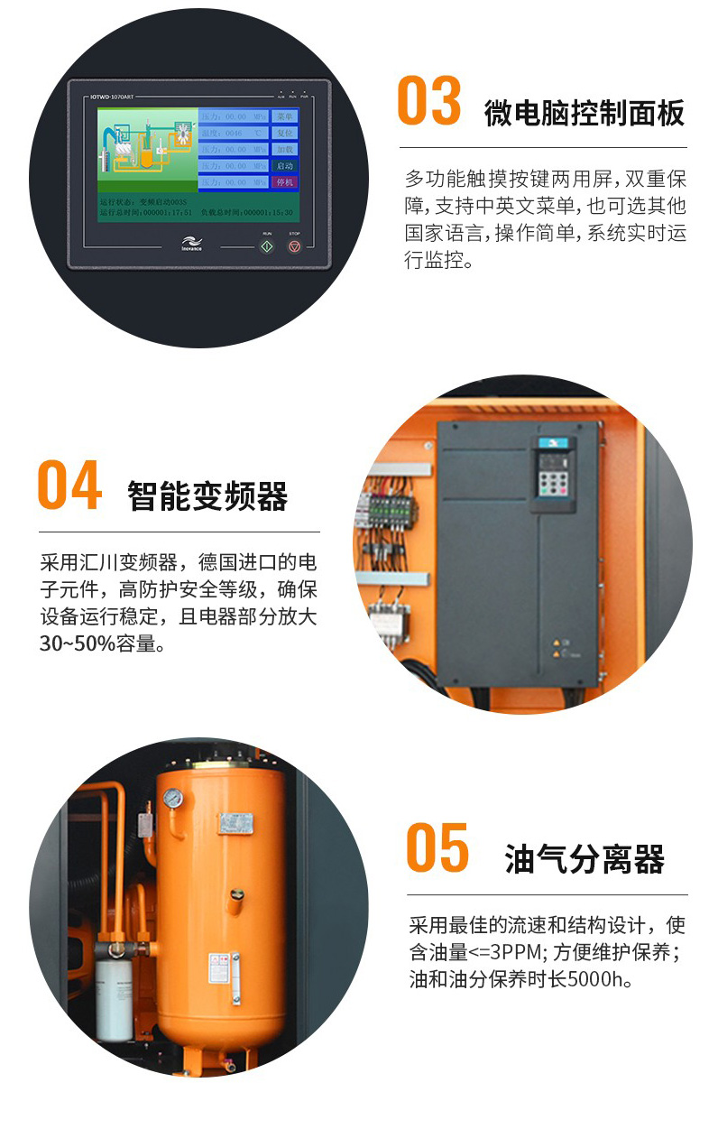 雙級壓縮主機更高效、更節能較雙螺桿空壓機節能高達35%以8000h/臺/年計算,每年可節約20萬元電費。
