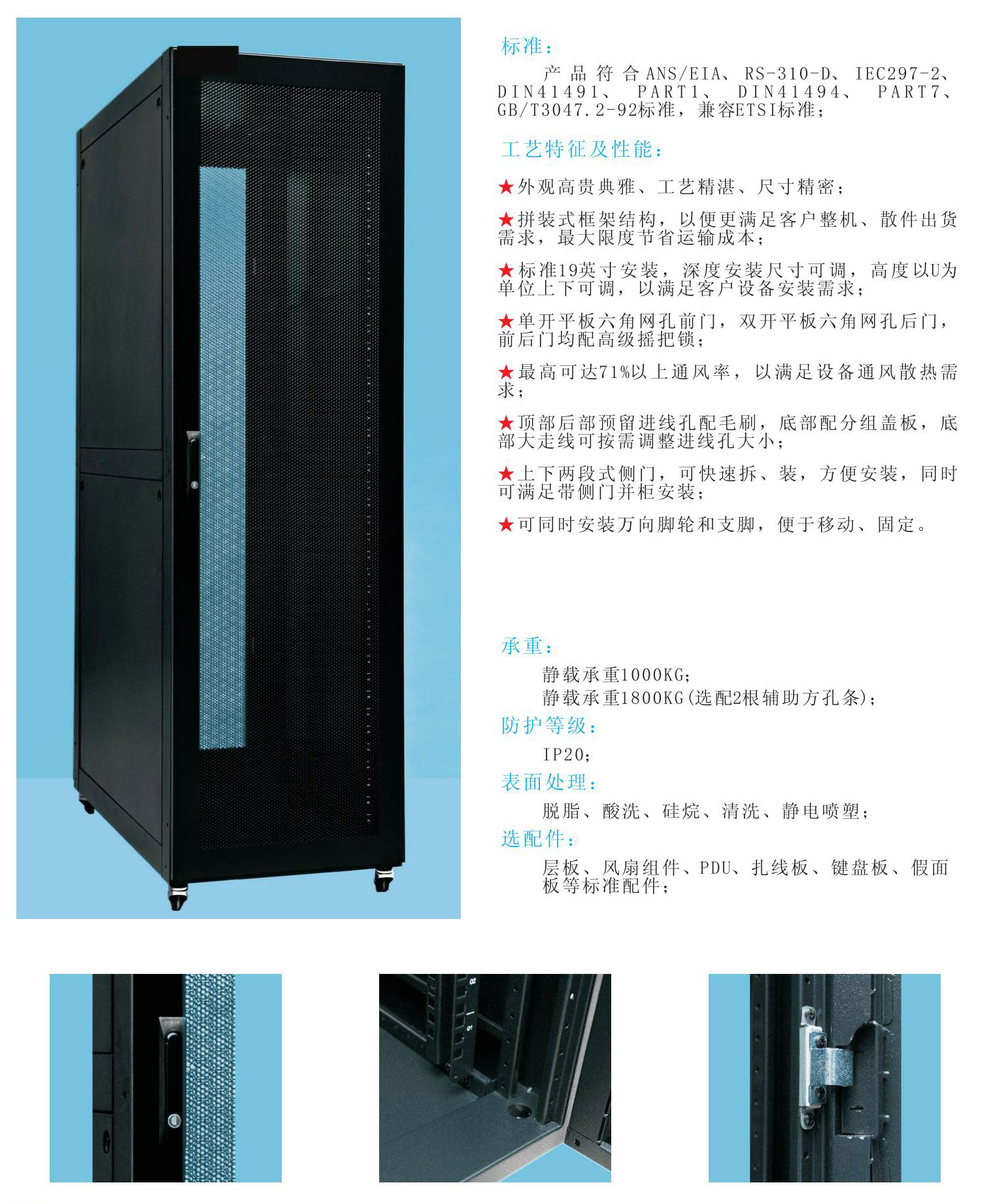 ★ 單開平板六角網孔前門,雙開平板六角網孔后門,前后門均配高級搖把鎖;